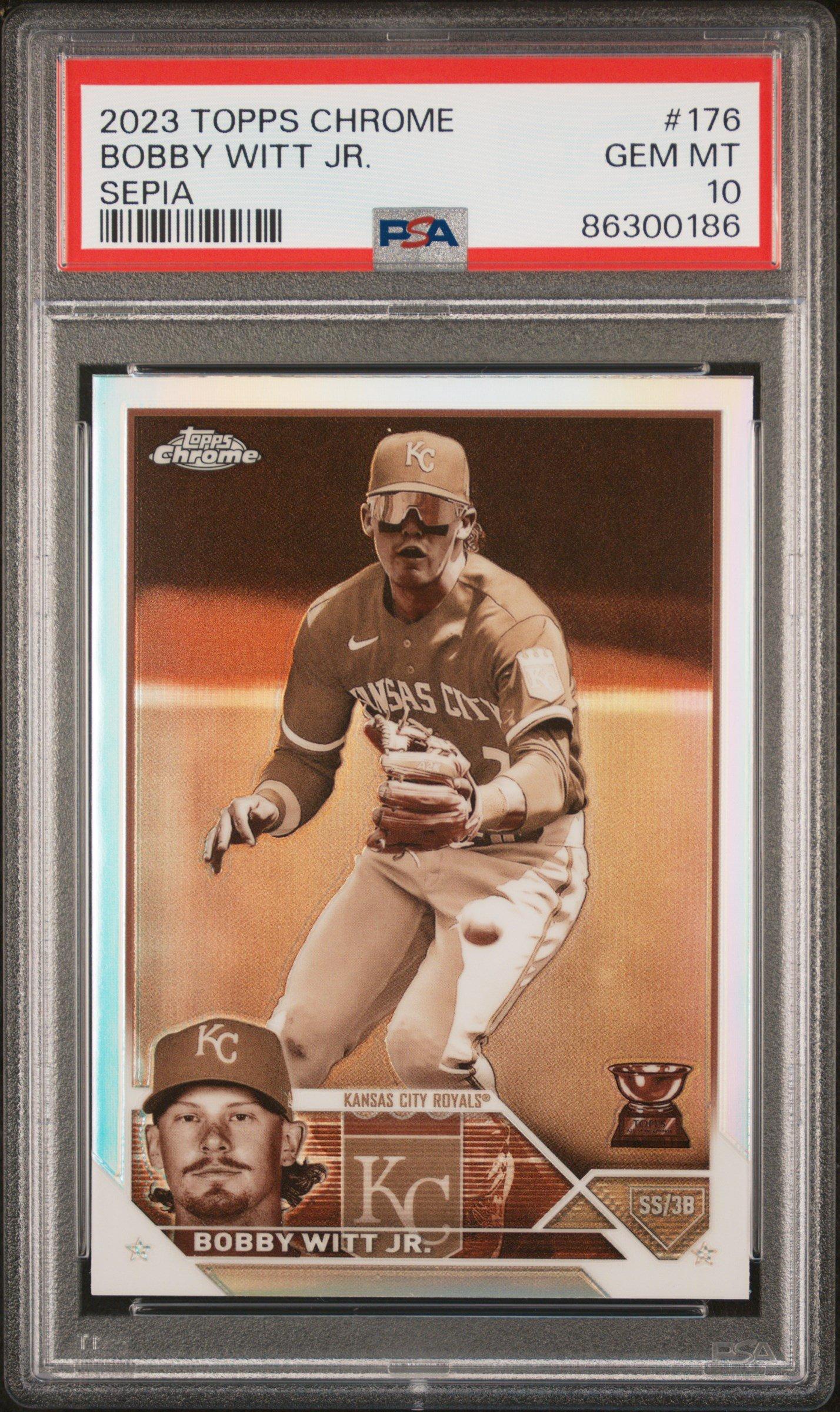 2023 Topps Chrome 176 Bobby Witt Jr. Sepia Refractor PSA 102023 Topps Chrome 176 Bobby Witt Jr. Sepia Refractor PSA 10