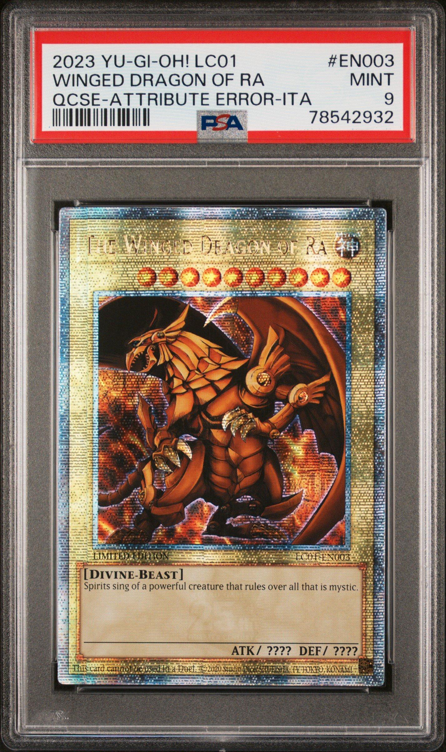 2023 Yu-gi-oh! Lc01-legendary Collection: 25th Anniversary Edition En003 The Winged Dragon Of Ra Quarter Century Secret Rare-attribute Error-italian PSA