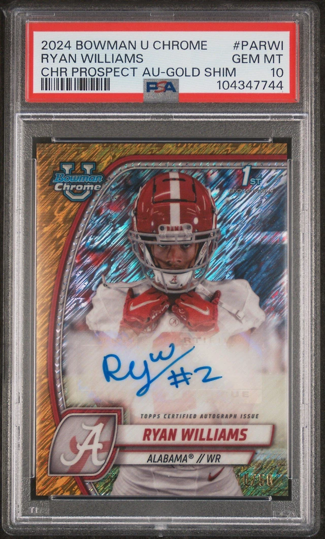2024 Bowman University Chrome Bowman Chrome Prospect Autographs Parwi Ryan Williams Gold Shimmer PSA 10