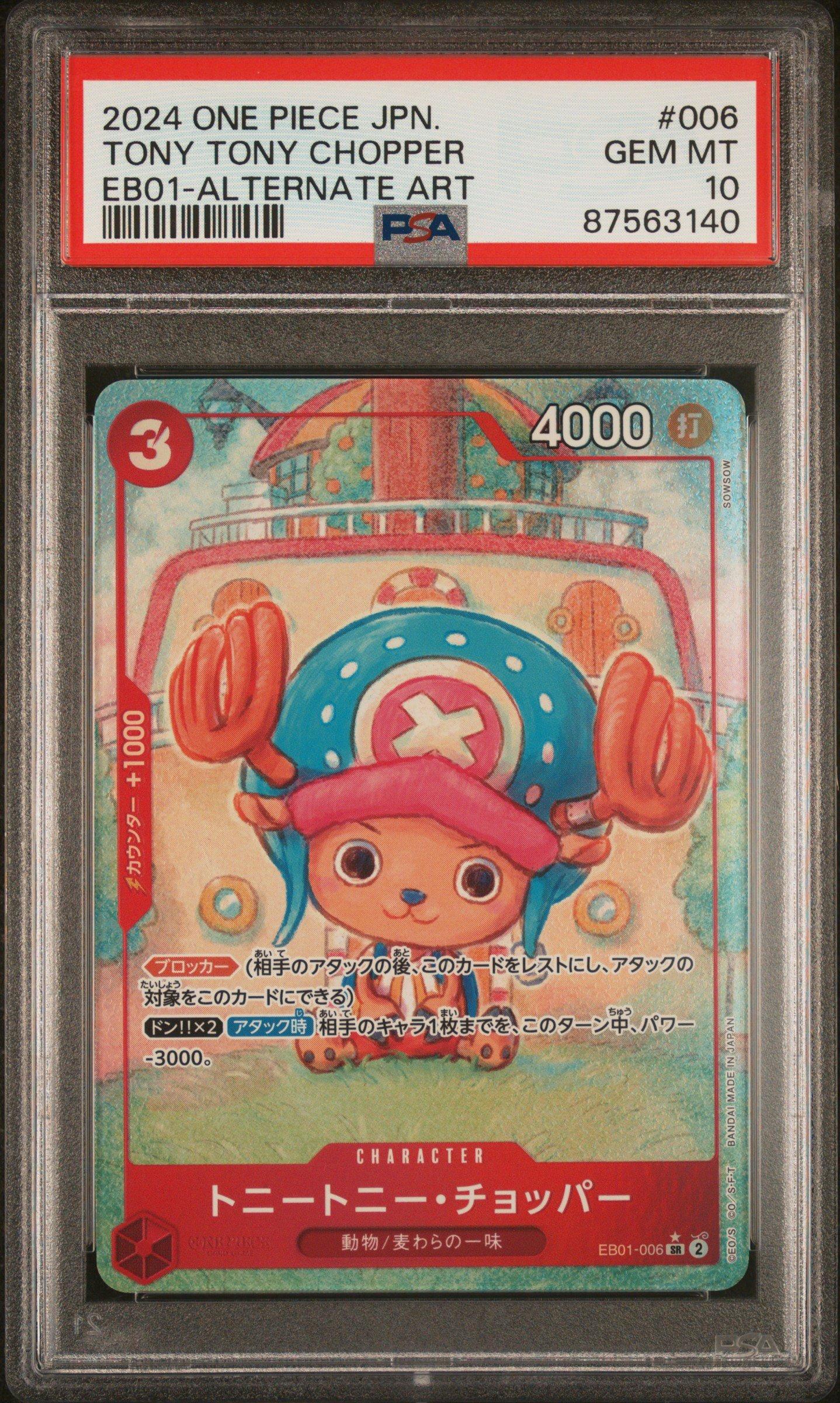 2024 One Piece Japanese Eb01-extra Booster -memorial Collection- 006 Tony Tony Chopper Alternate Art PSA 102024 One Piece Japanese Eb01-extra Booster -memorial Collection- 006 Tony Tony Chopper Alternate Art PSA 10