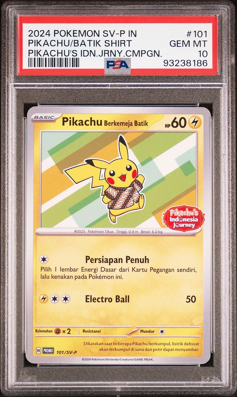 2024 Pokemon Indonesian Sv- Promo Pikachu In Batik Shirt Pikachu's Indonesia Journey Campaign PSA2024 Pokemon Indonesian Sv- Promo Pikachu In Batik Shirt Pikachu's Indonesia Journey Campaign PSA