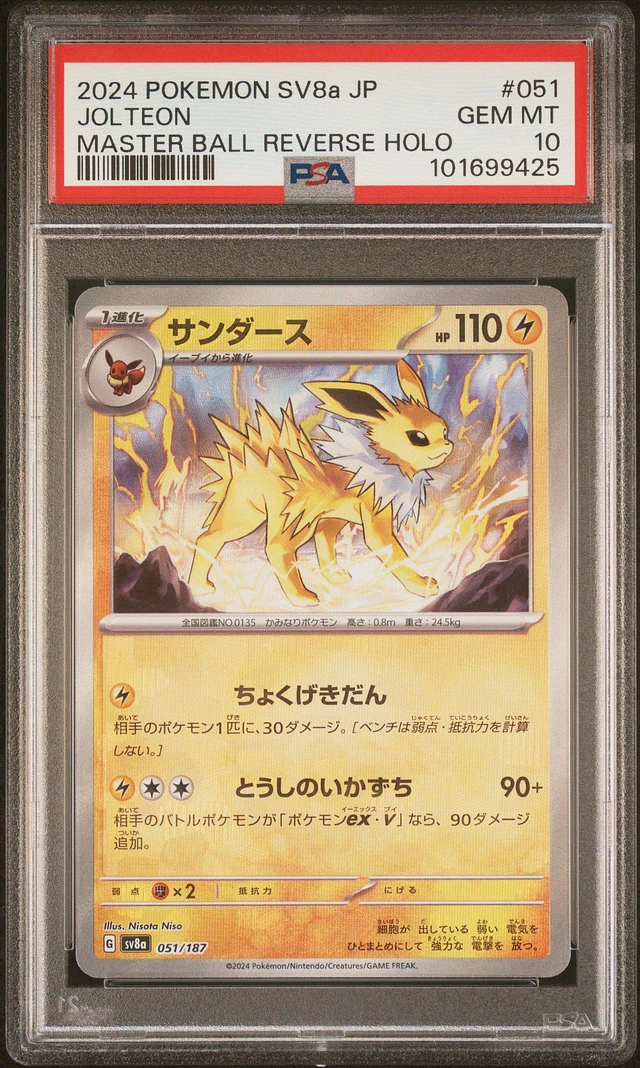 2024 Pokemon Japanese Sv8a-terastal Fest Ex 051 Jolteon Master Ball Reverse Holo PSA 10