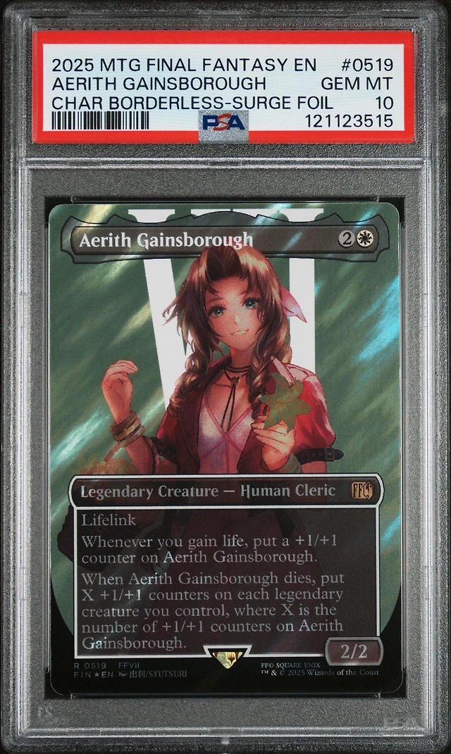 2025 Magic The Gathering Final Fantasy 0519 Aerith Gainsborough Character Borderless-surge Foil PSA 10