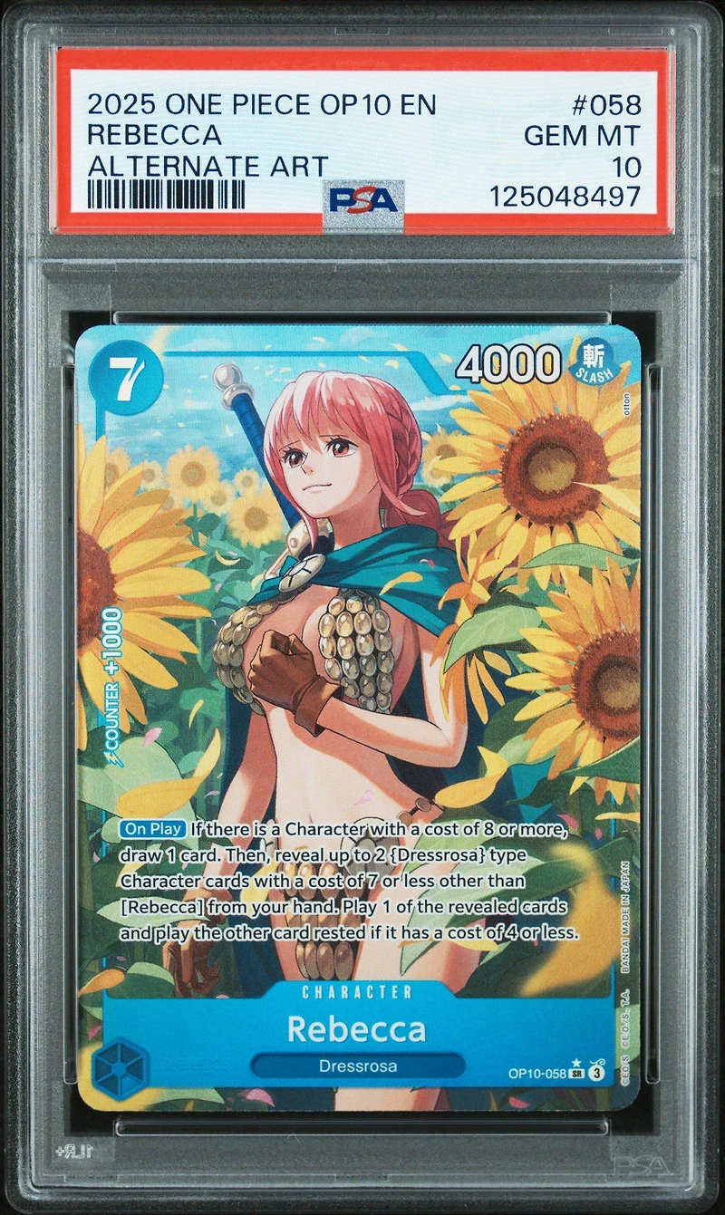 2025 One Piece Op10-royal Blood 058 Rebecca Alternate Art PSA 102025 One Piece Op10-royal Blood 058 Rebecca Alternate Art PSA 10