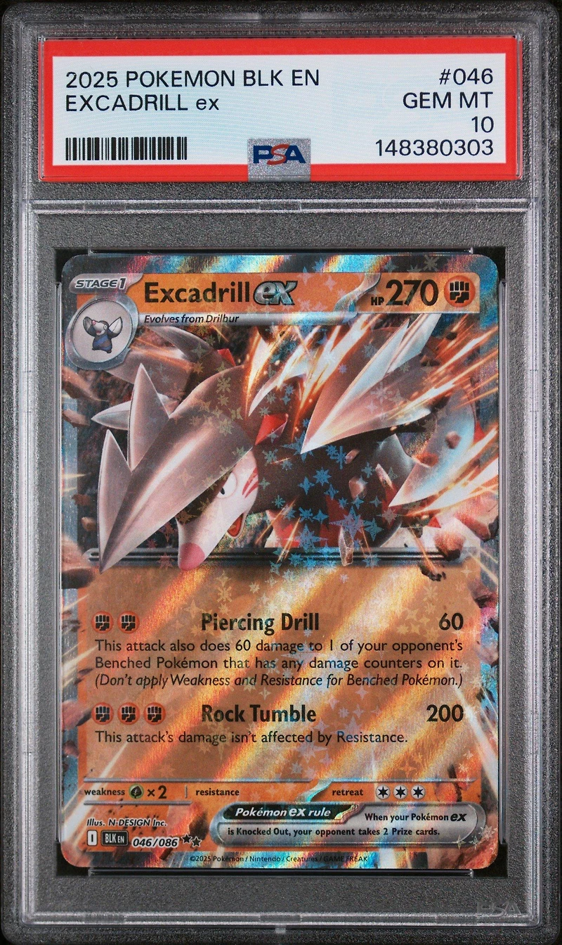 2025 Pokemon Blk En-black Bolt 046 Excadrill Ex PSA 10