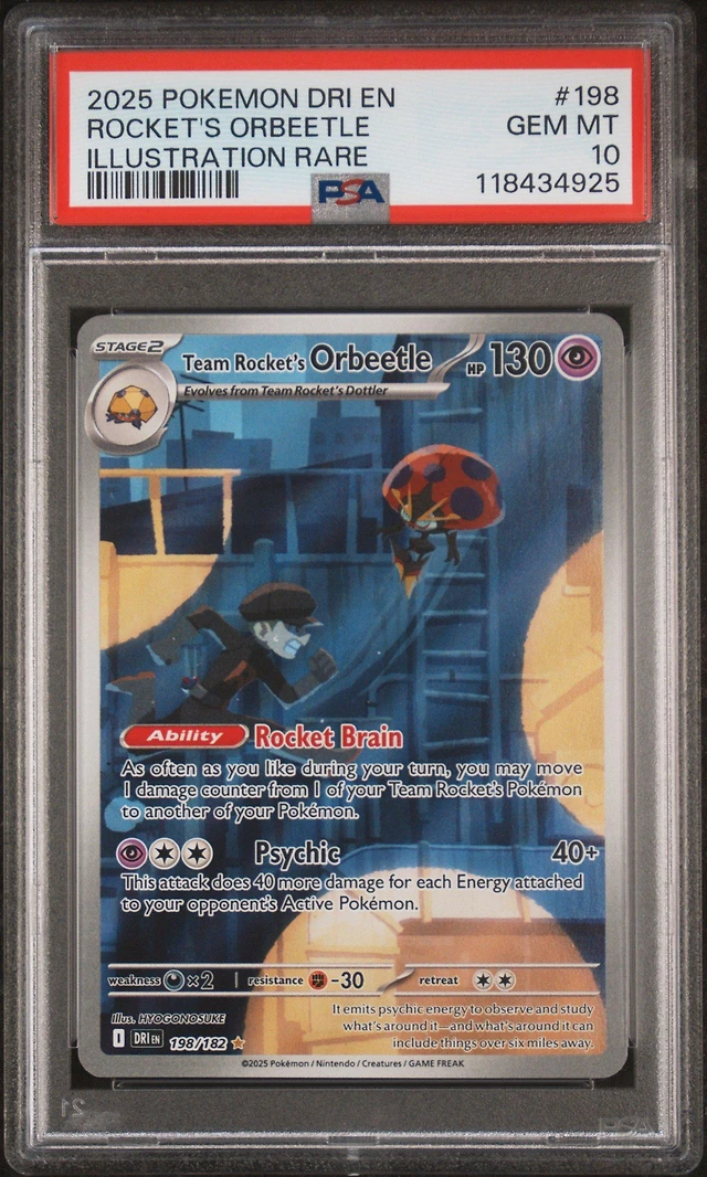 2025 Pokemon Dri En-destined Rivals 198 Team Rocket's Orbeetle Illustration Rare PSA
