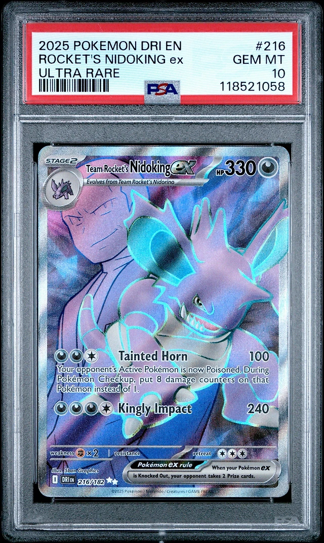 2025 Pokemon Dri En-destined Rivals 216 Team Rocket's Nidoking Ex Ultra Rare PSA