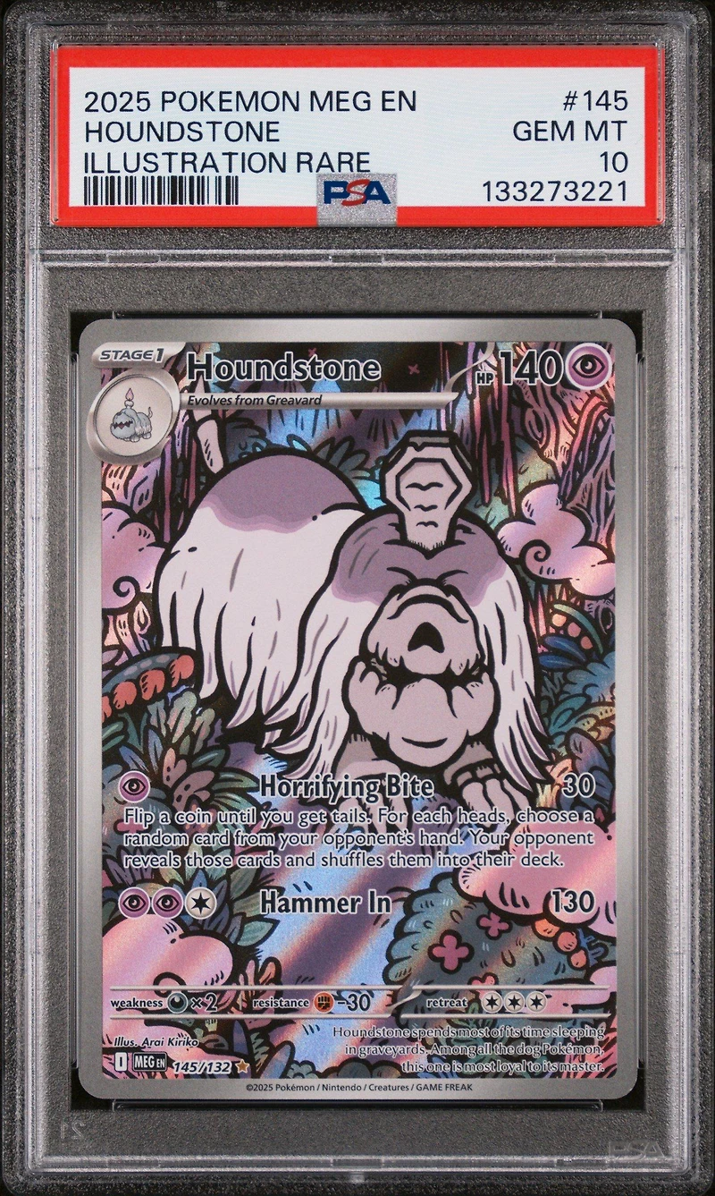 2025 Pokemon Meg En-mega Evolution 145 Houndstone Illustration Rare PSA2025 Pokemon Meg En-mega Evolution 145 Houndstone Illustration Rare PSA