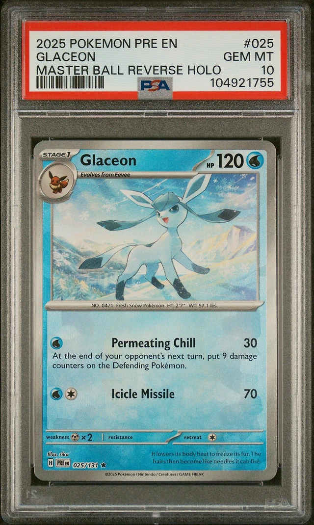 2025 Pokemon Pre En-prismatic Evolutions 025 Glaceon Master Ball Reverse Holo PSA