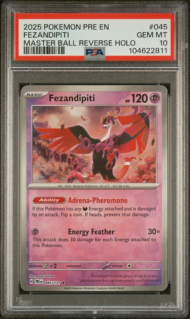 2025 Pokemon Pre En-prismatic Evolutions 045 Fezandipiti Master Ball Reverse Holo PSA