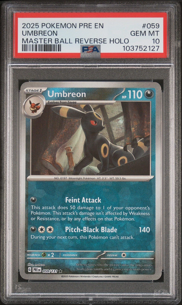 2025 Pokemon Pre En-prismatic Evolutions 059 Umbreon Master Ball Reverse Holo PSA