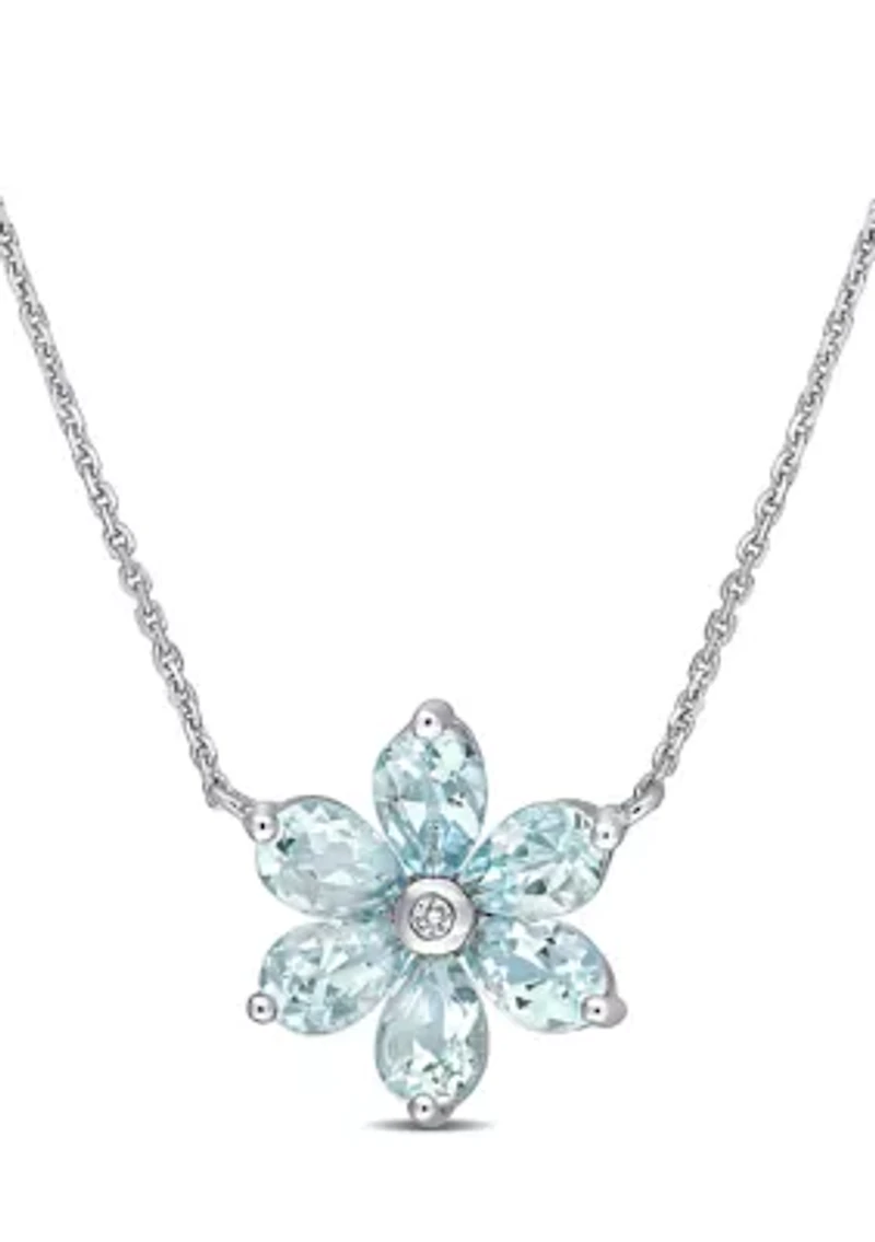 2.37 ct. t.w. Aquamarine and 1/10 ct. t.w. Diamond Accent Floral Necklace in 14k White Gold