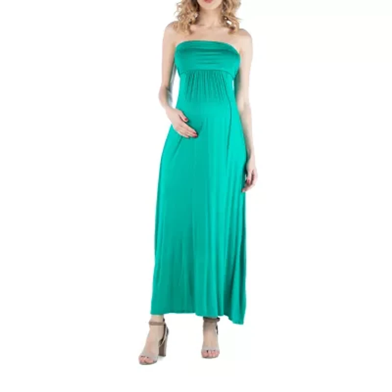 24seven Comfort Apparel Machine Washable, Rayon/Spandex Blend Knit Fashion Dress. This versatile sleeveless maternity maxi dress is simple, elegant and trendy. Easy to style up or down, the slim fit empire waist and gentle ruching around the bodice makes this maternity piece comfortable and easy to wear. A must have for the warmer months, this maternity maxi dress is sure to wow in any occasion.