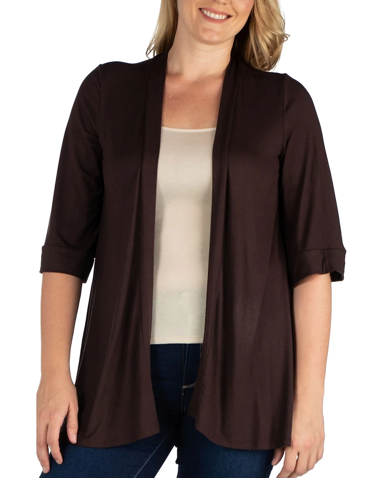 24seven Comfort Apparel Plus Elbow Length Open Front Cardigan Sweater