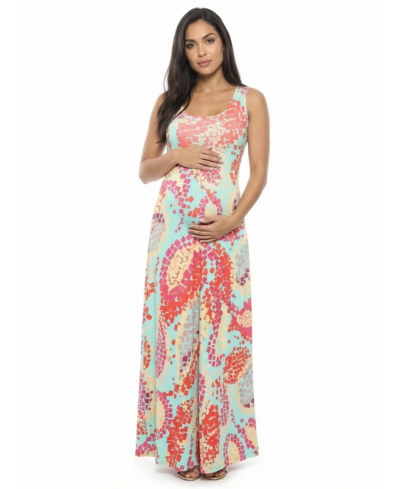 24seven Comfort Apparel Women's and Plus Maternity Scoop Neck Maxi Dress