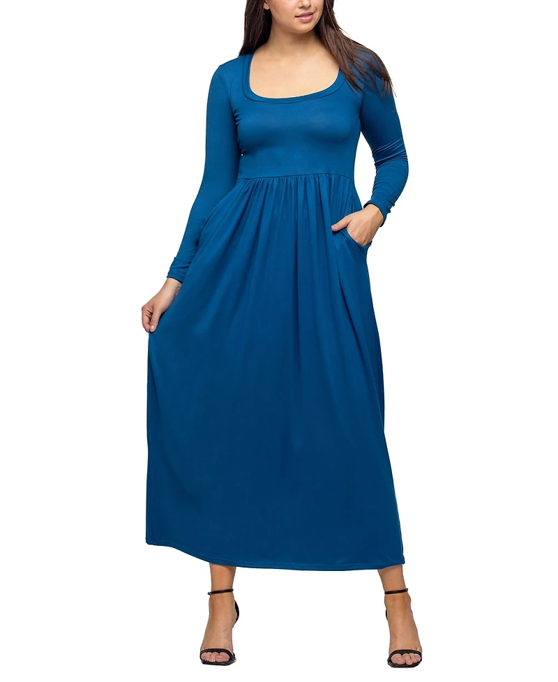 24seven Comfort Apparel Women's Long Sleeve Empire Waist Pocket Maxi Dress in Franklin, TN