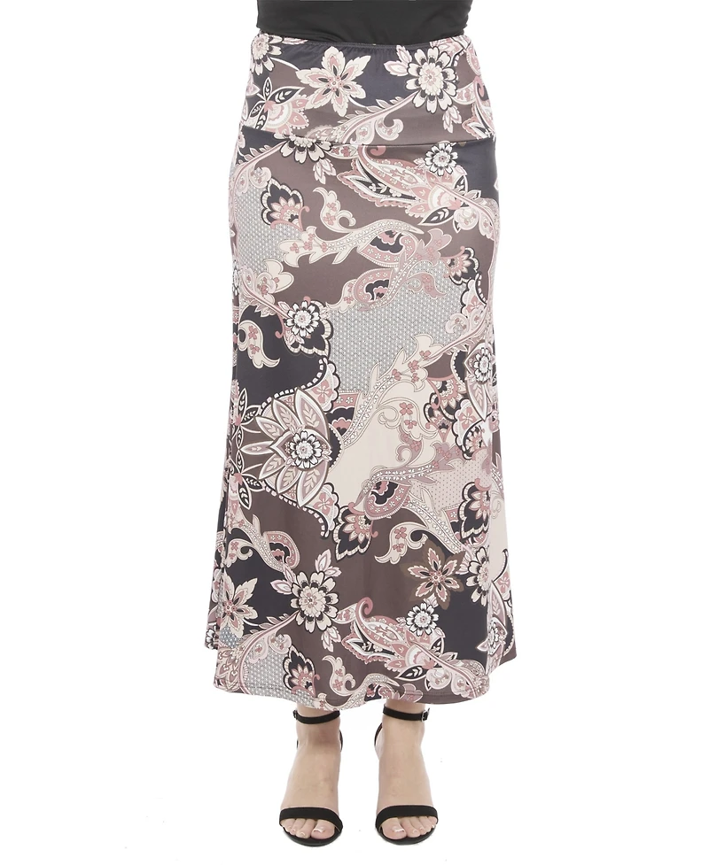 Bring easy style to any day with this brown paisley print maxi skirt from 24seven Comfort Apparel. The elastic waistband and flowy A line shape create a relaxed, flattering fit, while the soft stretch fabric keeps you comfortable. Machine washable and tumble dry, it pairs well with fitted tops, denim layers, or bold jewelry for effortless flair.