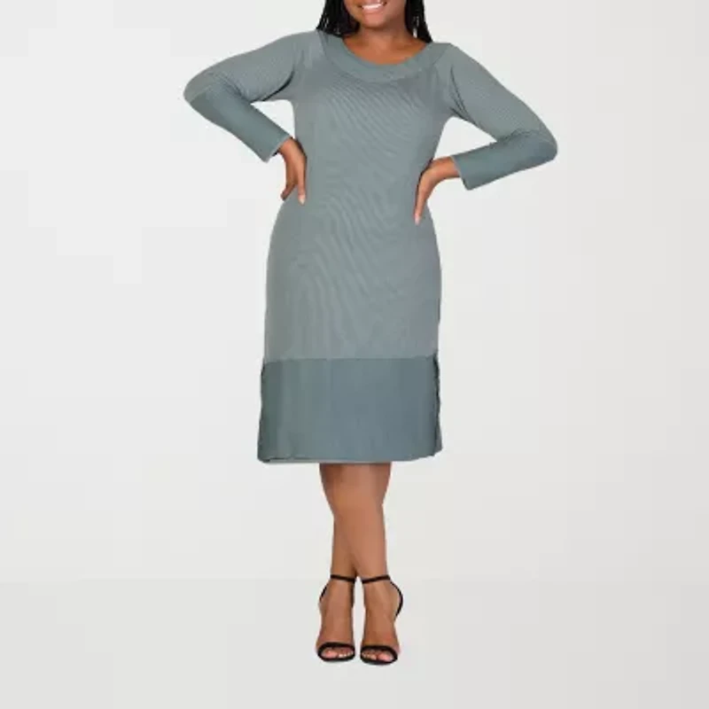 24seven Comfort Apparel Womens Plus Long Sleeve Sweater Dress