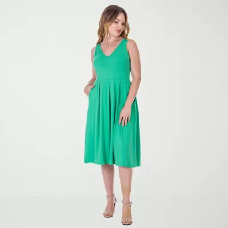 24seven Comfort Apparel Womens Sleeveless Midi Fit + Flare Dress