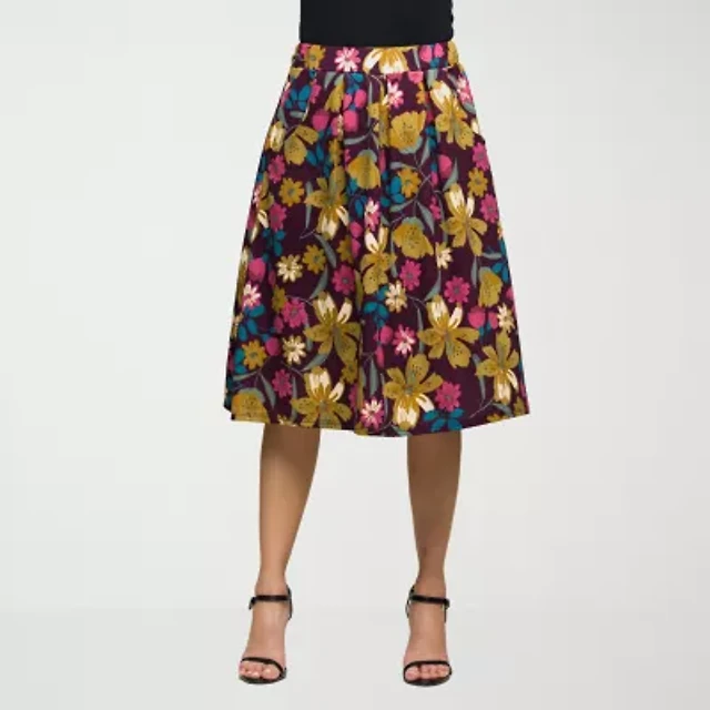24seven Comfort Apparel Womens Mid Rise Midi A-Line Skirt