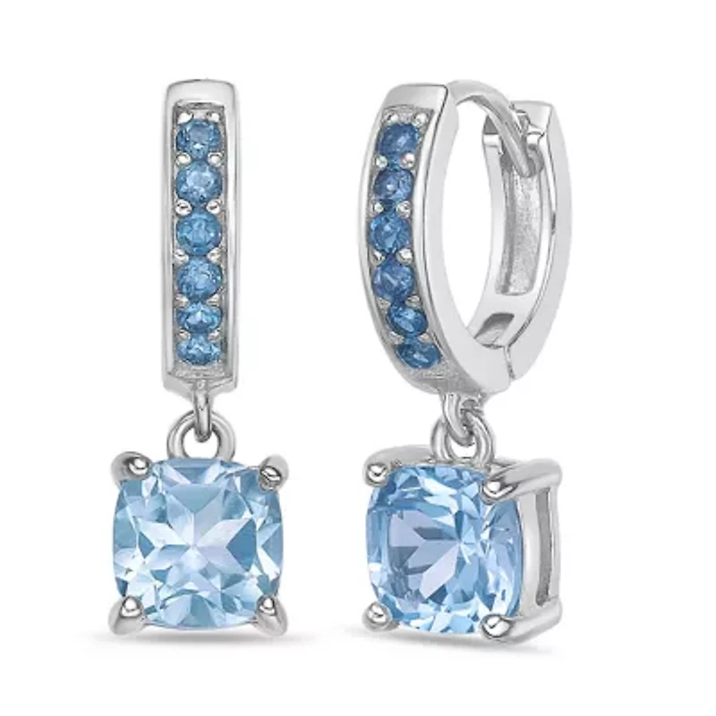 Embrace Elegance with Every Sparkle Indulge yourself in the breathtaking beauty of our 925 Sterling Silver 6 MM Cushion Cut Sky Blue Topaz Dangling Earrings. These exquisite pieces are not merely accessories; they embody grace and sophistication that can elevate your ensemble to unforeseen heights. Each time they catch the light, they reflect a serene azure hue reminiscent of a clear summer sky, evoking feelings of tranquility and joy. Whether you are dressing up for a special occasion or adding a touch of elegance to your everyday attire, these earrings become a captivating extension of your personal style, inviting admiration and intrigue from every angle. 2 pieces Hinge post earring, 14 Polished finish Prong setting Thailand Imported Product Specifications 18mm x 6mm 2.6 Material & Care Sterling Silver Metal, Sterling silver Use silver polishing cloth on silver items.