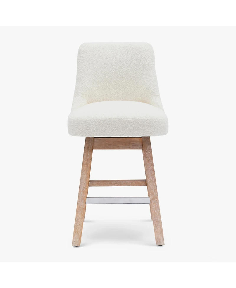 Indulge in sophisticated farmhouse style with our Boucle fabric counter stool. The antique-stained wood legs emit rustic charm while the water- and stain-resistant upholstery promises easy upkeep. Crafted for all sizes, it can be used as a counter, vanity, and high tabletop stool.
