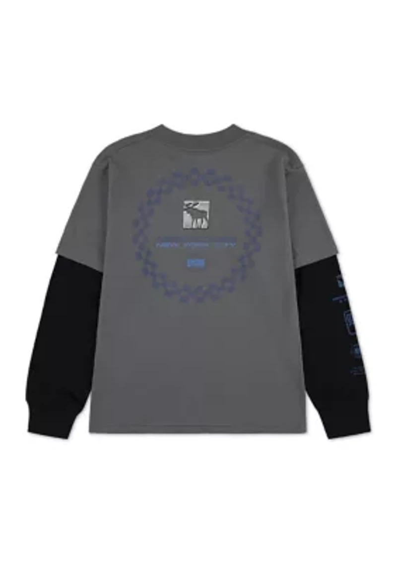 This racing-themed graphic t-shirt from abercrombie kids features a layered long sleeve design and graphic details for a cool, pulled-together look. Pullover Crew neck Long sleeves Imported Material & Care Cotton, polyester Machine washable