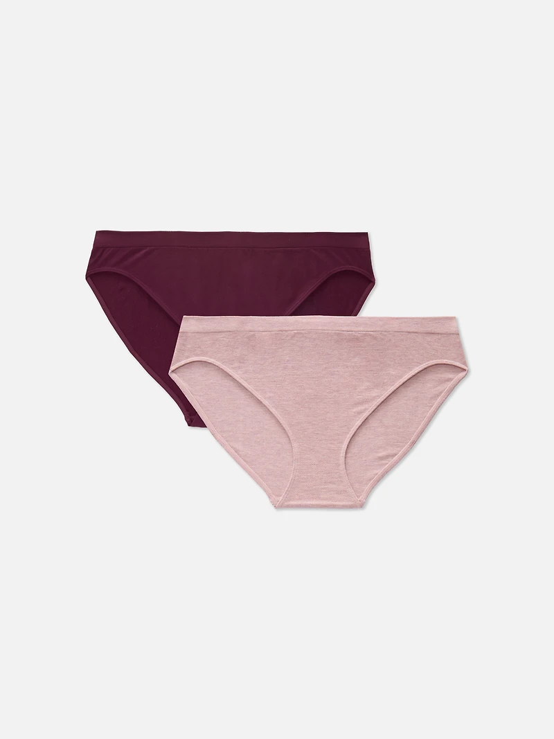 A pack of 2 seamless mini briefs in pink and burgundy, in support of Breast Cancer Awareness