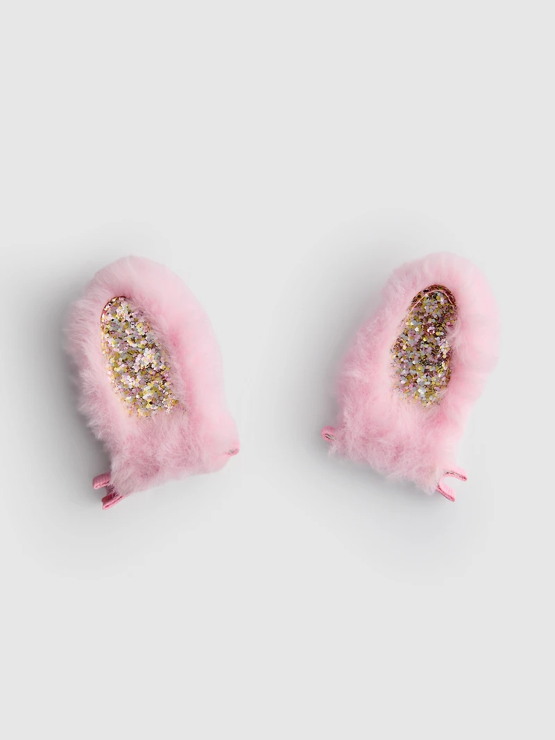 Two bunny ear hair clips for kids