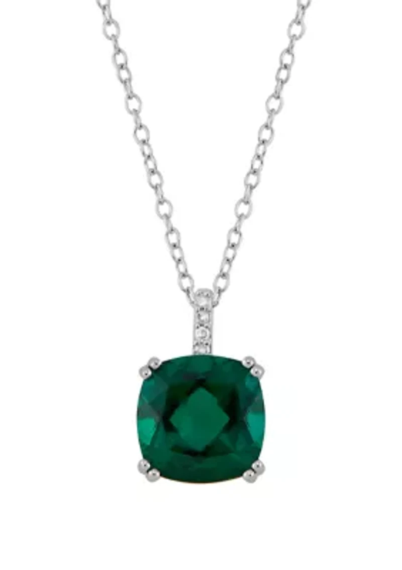 Crafted with luxury, this 3 ct. t.w. Emerald and 1/10 ct. t.w. Diamond Chain Pendant Necklace by Belk & Co. glistens in sterling silver. 1 Created Emerald, 4 Diamonds Color rating: i Clarity rating: I3 Spring ring clasp Prong setting Polished finish Imported Belk Exclusive Product Specifications 3 ct. t.w. Emerald, 1/10 ct t.w. Diamond 18 in Length Material & Care Sterling silver Clean with a soft cloth