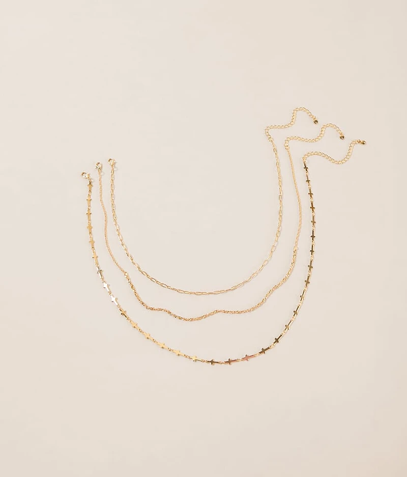 Paperclip chain necklace length measures 18" Basic chain necklace length measures 20" Multi cross necklace length measures 22"