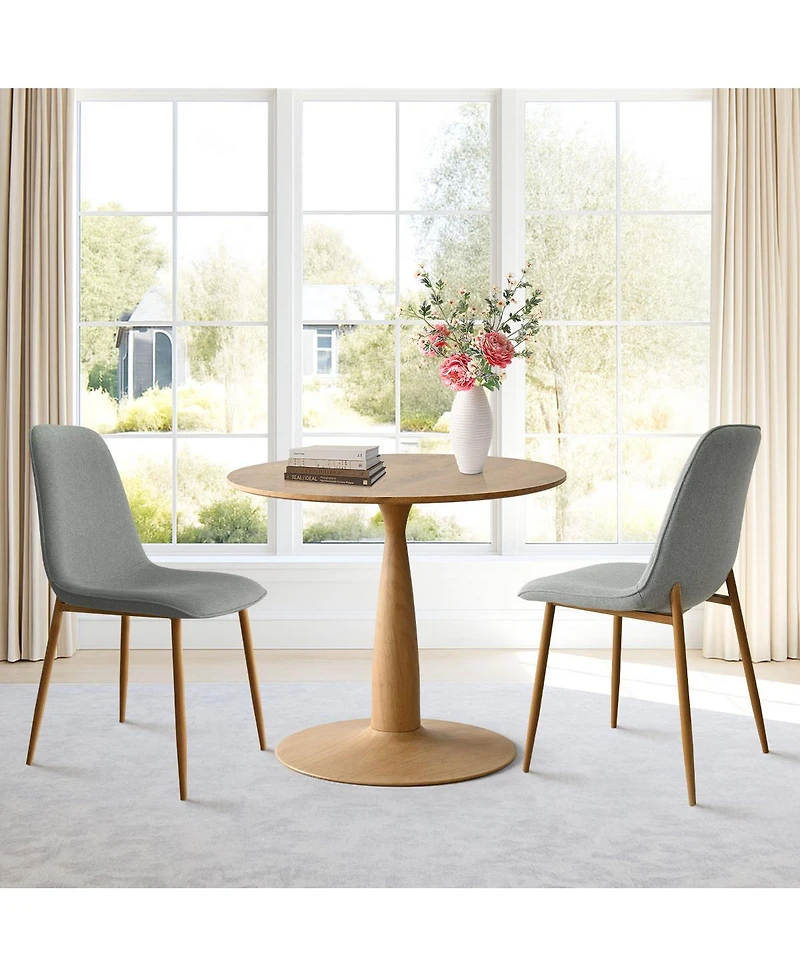 Transform your dining experience with this sleek 34.5"" Round Dining Table Set, featuring two elegantly designed chairs. The table boasts a smooth Mdf top supported by a sturdy metal base, providing both durability and style. The natural color finish adds warmth, while the curved lines of the chairs enhance comfort and aesthetic appeal. Ideal for small spaces, this set perfectly combines form and function, making it a perfect choice for modern homes. Whether you're enjoying a casual breakfast or hosting a dinner party, this dining set offers a stylish solution that complements any decor.