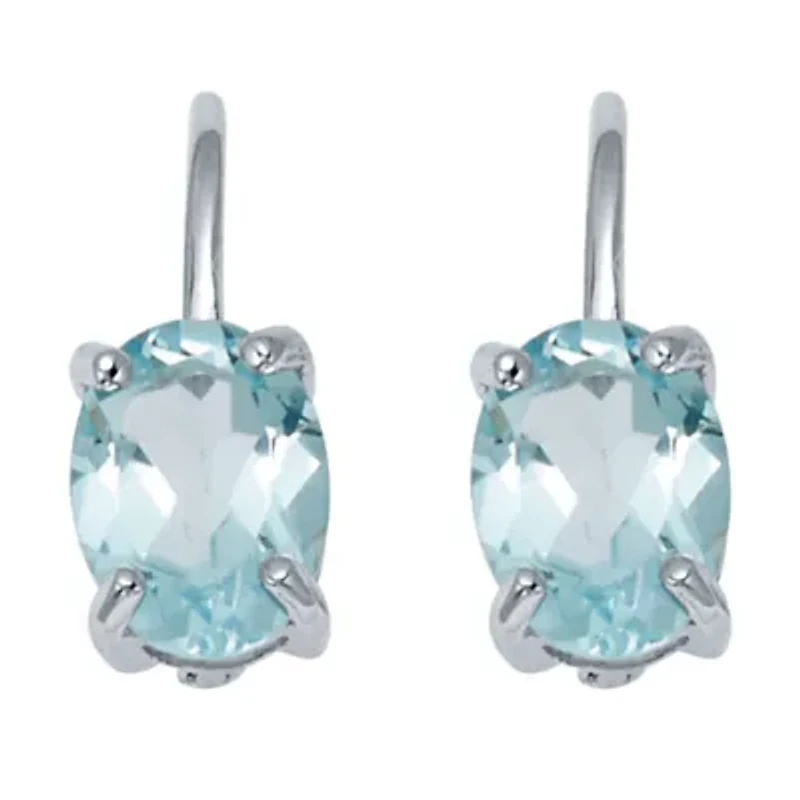 Brighten any outfit with these heavenly oval-cut blue topaz earrings. Showcasing a 3.20 TCW of genuine topaz in an elegant design, these sterling silver drop earrings will quickly become a favorite. Highly giftable and perfect for any occasion! 18x6mm.Brighten any outfit with these heavenly oval-cut blue topaz earrings. Showcasing a 3.20 TCW of genuine topaz in an elegant design, these sterling silver drop earrings will quickly become a favorite. Highly giftable and perfect for any occasion! 18x6mm.Sterling SilverContains 1.30 grams of Sterling SilverDimensions: 6 mm wide x 18 mm long x 18 mm highSterling SilverContains 1.30 grams of Sterling SilverDimensions: 6 mm wide x 18 mm long x 18 mm highIncludes gift box and drawstring pouch Leverback, 2 Polished finish Prong setting Warranty available, Limited liability warranty, 30 Days Thailand Imported Product Specifications 6 mm wide x 18 mm long x 18 mm high 3.2 Material & Care Sterling Silver Metal, Sterling silver Clean with a soft cloth.