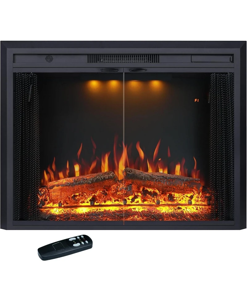 33" Recessed-in Realistic Flame Electric Fireplace with Adjustable Heat, Timer