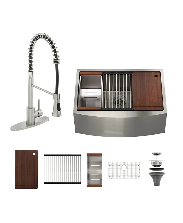 33''x 22'' Stainless Steel Kitchen Sink and Pull-Down Kitchen Faucet Set with Cutting Board, Roller Blind, Drain Basket