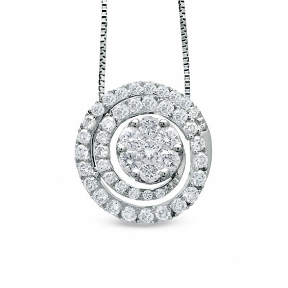 3/4 CT. T.w. Multi-Diamond Swirl Flower Pendant in 14K White Gold