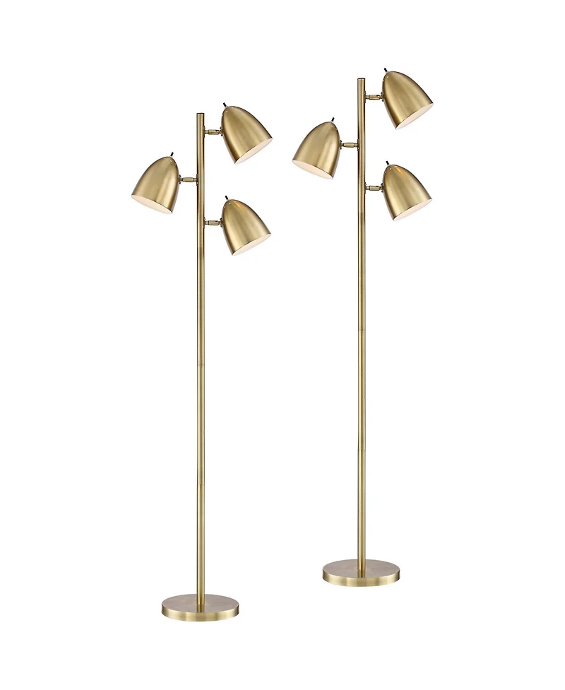 360 Lighting Aaron Mid Century Modern 64" Tall Standing Floor Lamps Set of 2 Lights Adjustable 3-Light Metal Aged Brass