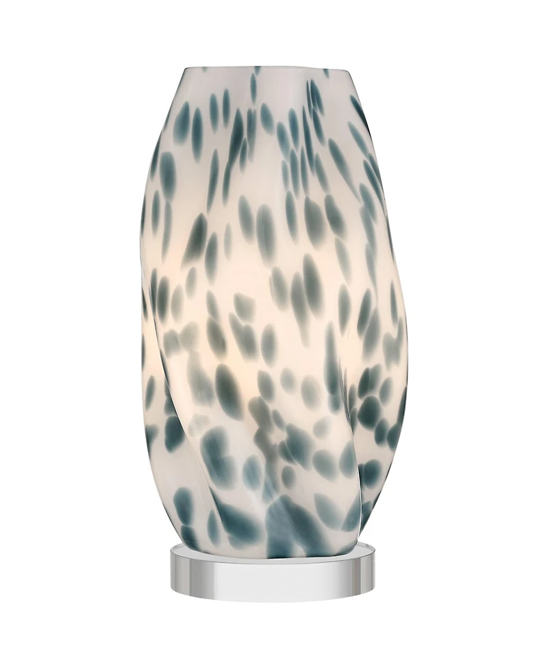 Need a touch of additional light in a compact style? The Chelsea accent table lamp from the 360 Lighting brand is here to remind that great things come in small packages. A white glass shade reaches up from the brushed nickel finish base, decorated in a series of greenish-blue spots, creating a sense of coastal modern ease.