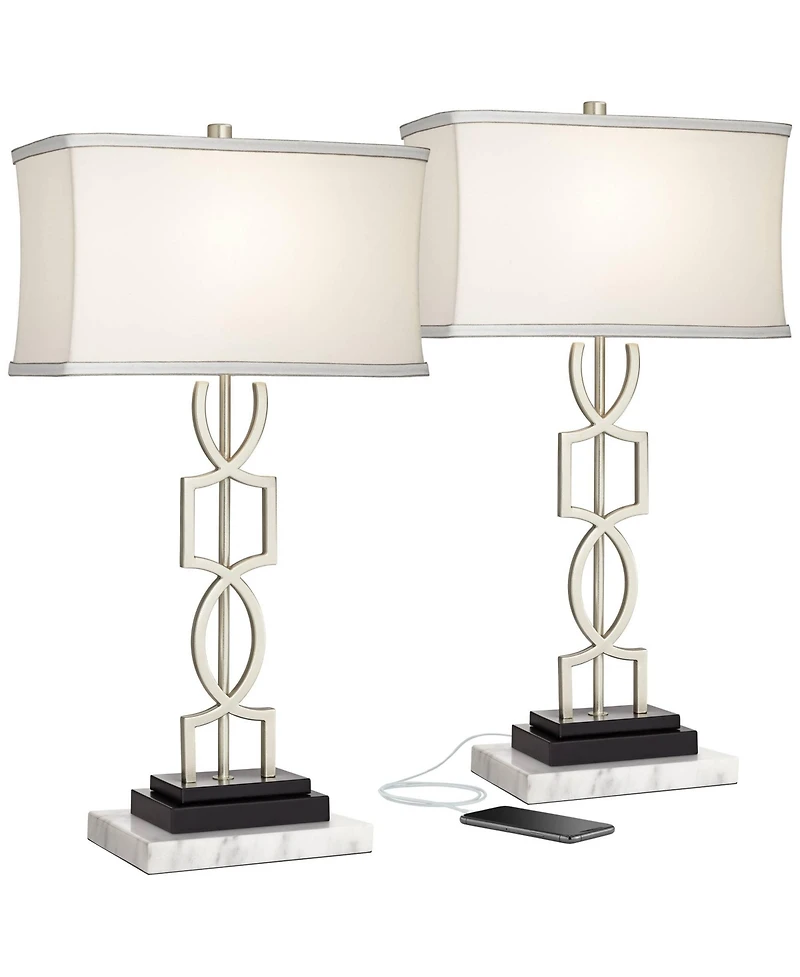 360 Lighting Evan Modern Table Lamps Set of 2 with Risers 28 1/2" Tall Brushed Nickel with Usb Charging Port for Bedroom Living Room
