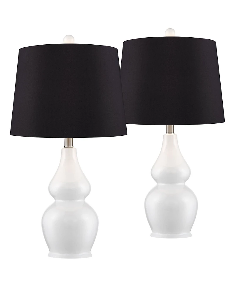 This Jane set of two double gourd table lamps from 360 Lighting is designed with ceramic to boast sleek charm and detail. The white finish reinforces the clean and distinct style of each lamp. With a ball finial atop each lamp, this set is decorated from top to bottom to ensure elegant and decorative style.