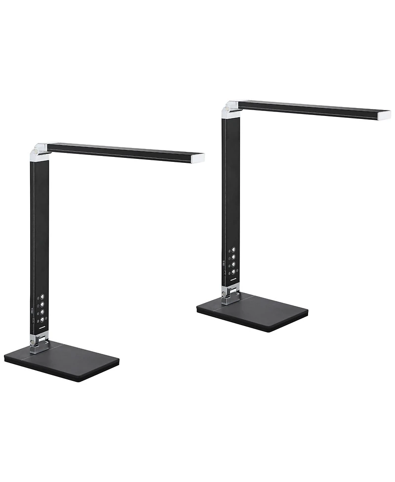 Upgrade your home office or work desk with this set of two contemporary Led desk lamps from the 360 Lighting brand. With metal construction and a black finish, these designs also feature Usb ports and petite night lights. These lamps are energy-efficient and adjustable, which make them a great choice for your workspace.