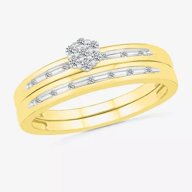 3.60mm Unisex Adult 1/5 CT. Natural White Diamond 10K Gold Round Side Stone Wedding Ring Set