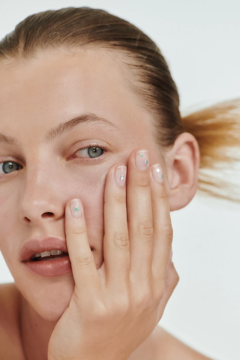 Set of sixty 3D nail stickers in a variety of shades and designs, including pink and mint-colored hearts, silver sparkles, and jewel-shaped motifs. These stickers are the perfect finishing touch for your manicure, adding a pop of color, sparkle, and three-dimensional detail.