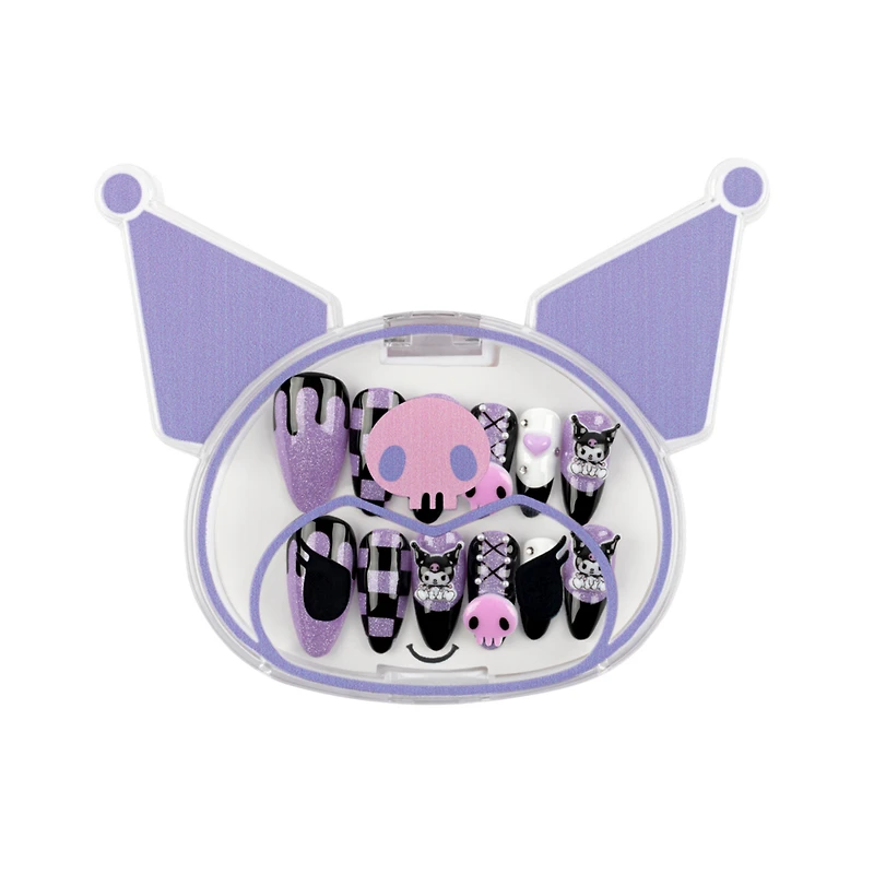 Kuromi Almond Nails. Benefits: Salon-quality look in minutes. reusable and durable. two easy application options. comfortable fit. available in a variety of styles. Features: First-ever 3D Kuromi press-on nails. handmade with detailed character charms. lightweight and comfortable. reusableand available in multiple shapes and lengths. Includes: 24 nails. 1 alcohol pad. 24 adhesive tabs. 1 ml nail glue. 1 cuticle stick. 1 nail file.