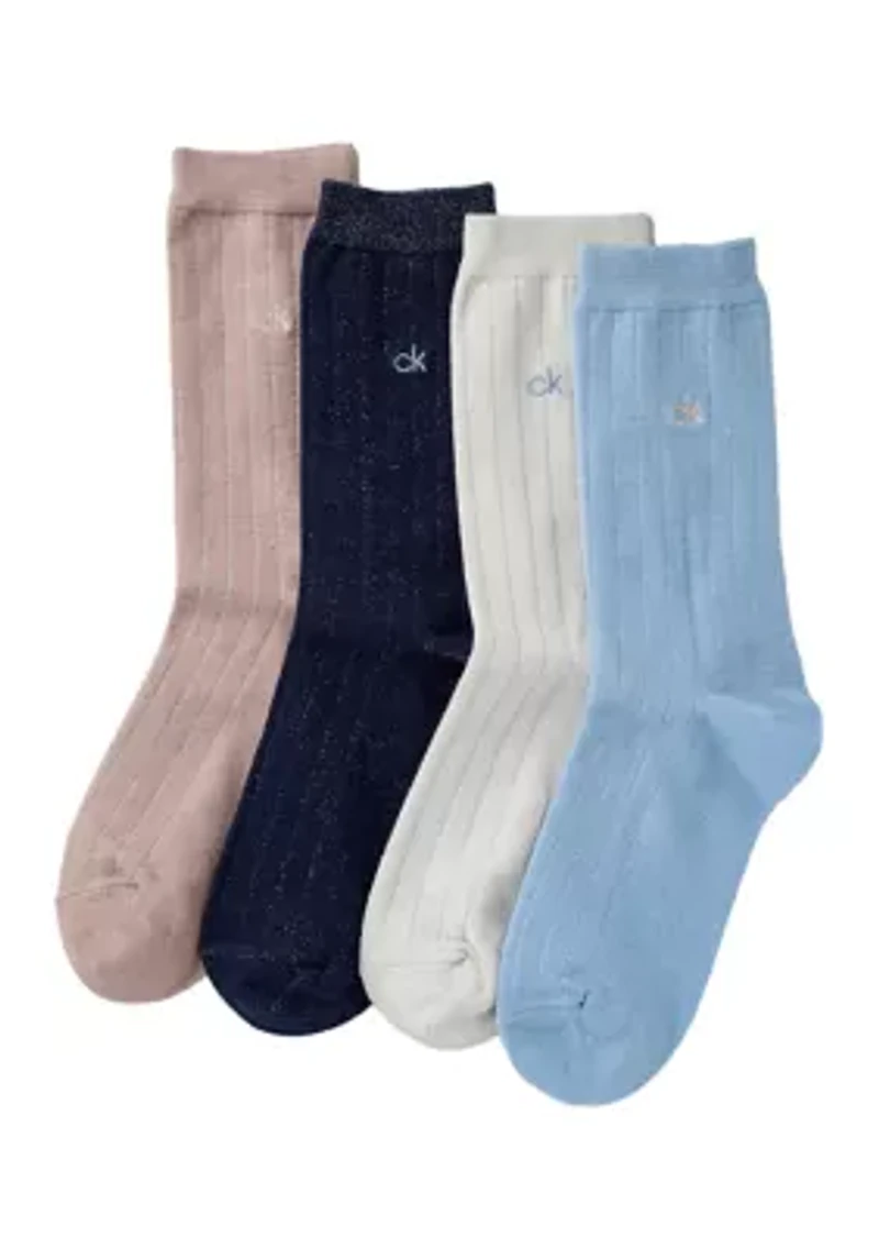 Sparkly accents lend festive style to this 4-pack of holiday crew socks from Calvin Klein. Set of 4 Imported Material & Care Cotton, polyester Machine washable