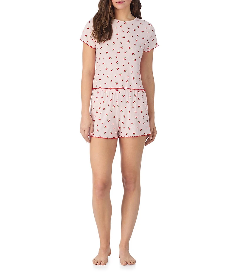 40WINKS Cherry Print Short Sleeve Crew Neck Knit Boxer Pajama Set