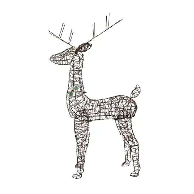45.5'' LED Lighted Rattan Deer Outdoor Christmas Decoration