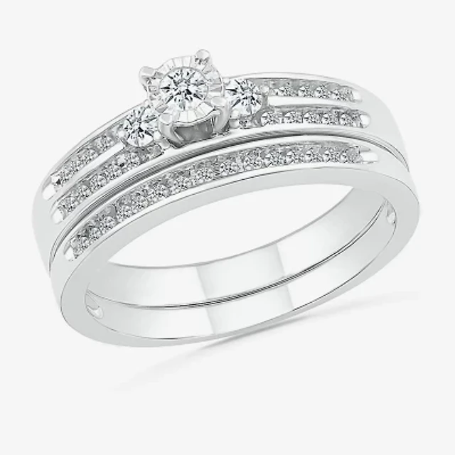 5.20mm Unisex Adult 1/4 CT. T.W. Natural White Diamond 10K White Gold Round Side Stone Wedding Ring Set