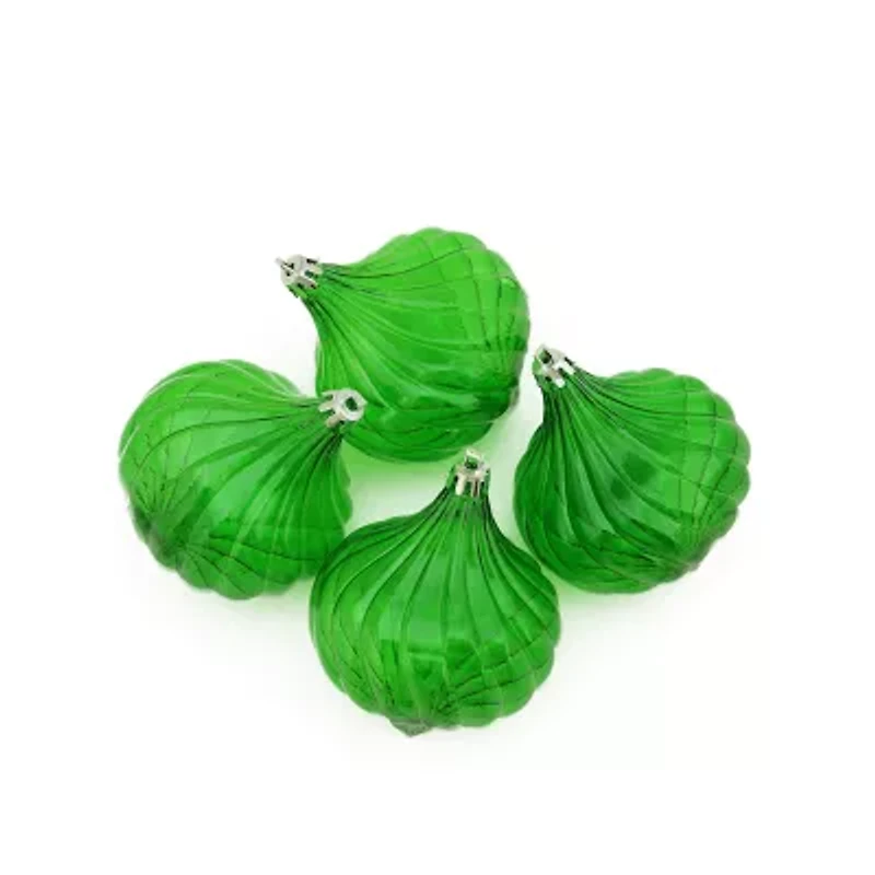 4ct Green Transparent Onion Drop Shatterproof Christmas Ornaments 4.5"