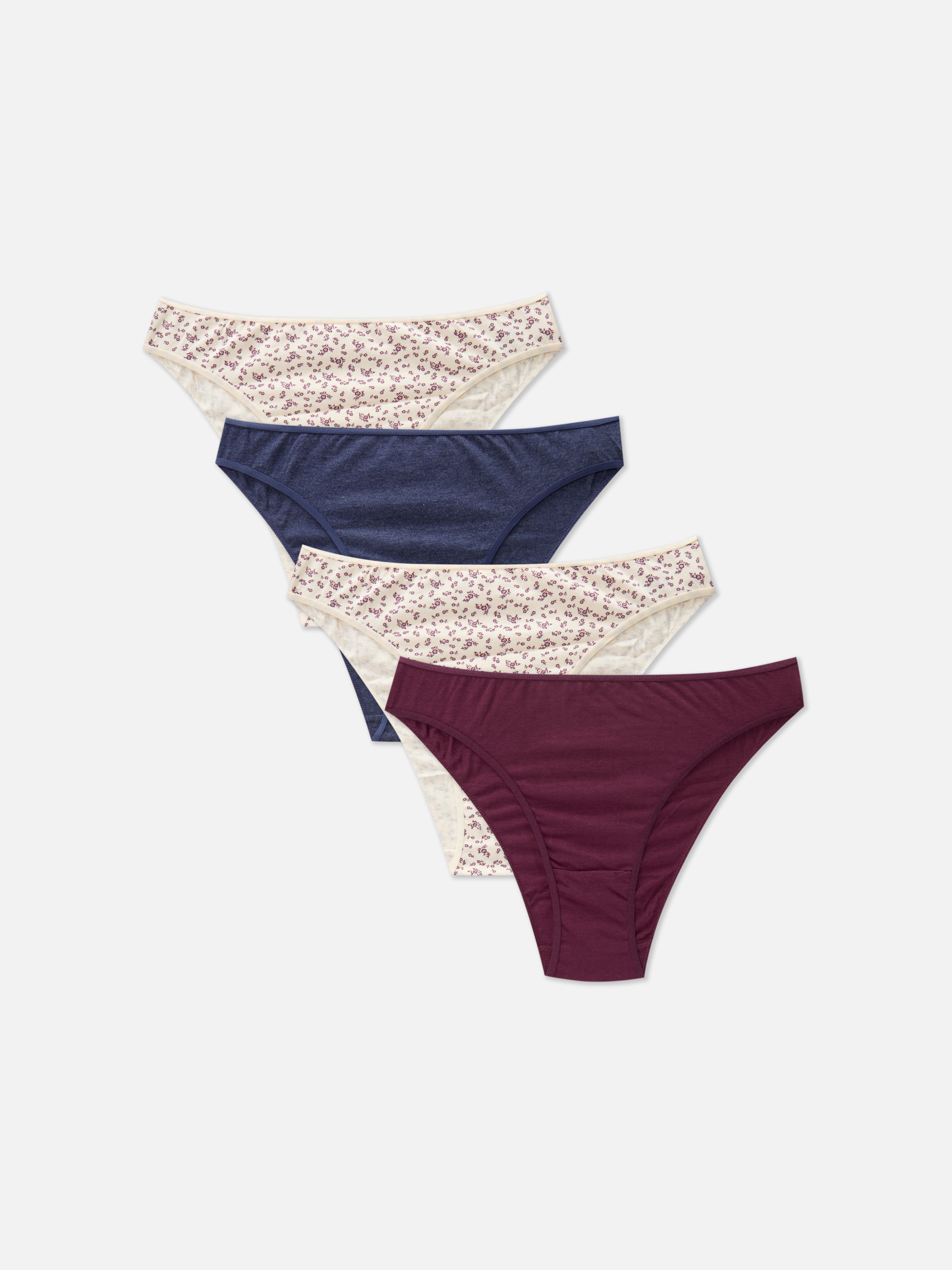 A 4 pack of cotton rich, high waisted briefs in a mix of prints and colors